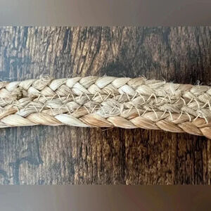 World Market | jute surfer, boho crossbody tote bag. Material: woven jute. Flap over with wooden toggle closure. Size: 16”x14”x4”. Colors: beige/tan, black and white. Strap: 24” from top of strap to top of bag, 1” wide strap. White, pom pom ball fringe accent. Oversized bohemian, beach, surfer type tote bag. Imported, made in India. Good, used condition.