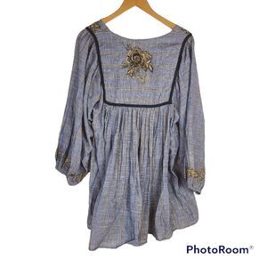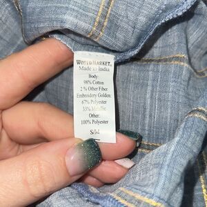 ✨ World Market Denim Blue Striped Embroidered Tunic