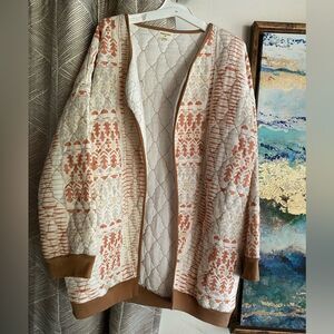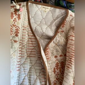 World Market Women’s Jacket One Size Cotton Open Front White Brown Pockets