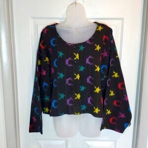 World Piece by Nina Grand Button Front Stars Moon Handwoven Top Jacket SZ XL-XXL