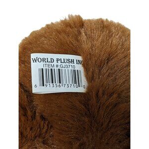 World Plush Brown Teddy Bear Plush Green Gingham Bow Stuffed Animal 9"