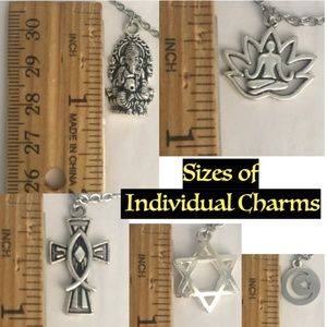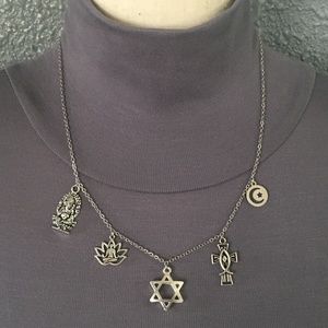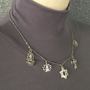 Religion has played an important role in the lives of human beings throughout history. Hinduism, Buddhism, Judaism, Christianity, and Islam are the five primary world religions, and they have more in common than most people believe. Celebrate world religions, with this handmade charm necklace with pendants & charms that represent all 5 major religions!