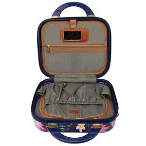 Discover the World Traveler Chariot Collection, where fashion seamlessly merges with functionality. This vintage luxury trunk-style cosmetic case is meticulously designed, featuring a built-in vanity mirror, a convenient bag strap for suitcase attachment, and a versatile detachable shoulder strap. Travel in style and grace with this impeccable accessory.
