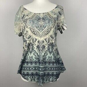 World Unity Blouse Womens Small Short Sleeve Beaded Scoop Neck Ladies Top Casual