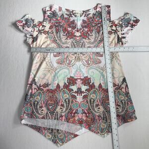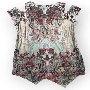 World Unity Cold Shoulder Paisley Print Boho Top Size XL Multi Soft Knit Blouse