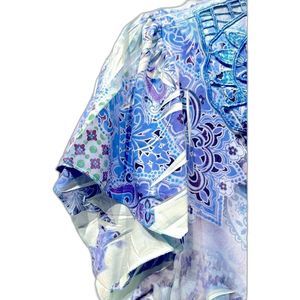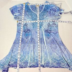 World Unity Embellished BOHO Tunic Blue Purple Handkerchief Hem Size M.