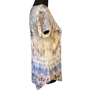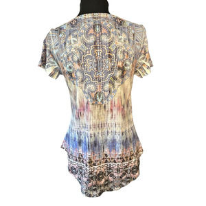 World Unity Pastel Bohemian Print Scoop Neck Embellished Top, Size S