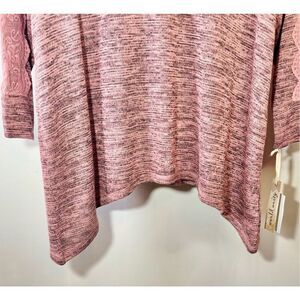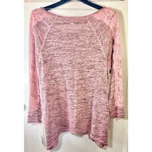 World Unity Pink & Black Scoop Neck Sweater w lace Trim Sleeve Overlay S: 1X
