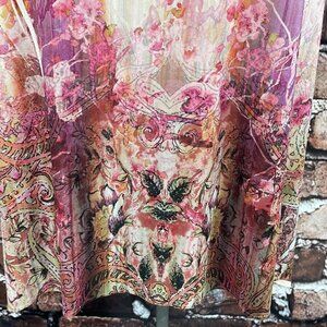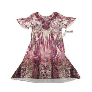 World Unity Romantic Stone Dress NWT Short Sleeve Notch Midi Pink Size Large L