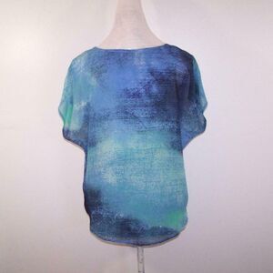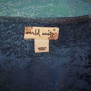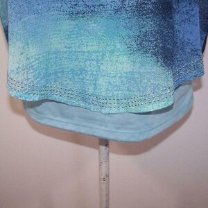 World Unity Shirt Top Medium Chiffon Overlay Studded Scoop Neck Layered Blue
