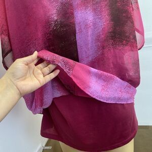 World Unity Top Womens 0X Pink Stretch Lined Chiffon Overlay Gold Studded Trim