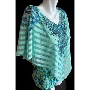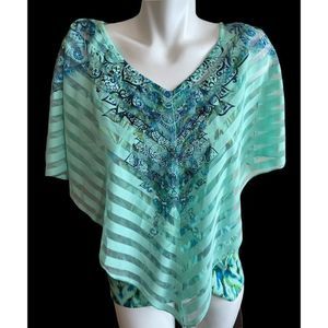 World Unity Top Set / 2 Piece / Mint Green Blue Tank with Cape Poncho / XS