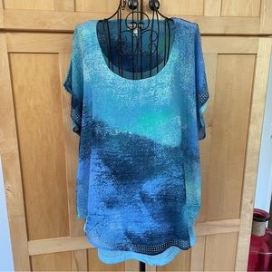 World Unity blue with bling Top with underneath tank size Large Measurements taken laying flat approximately- 22” inches armpit to armpit 22” and 23” inches length EUC