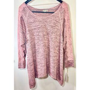 World Unity Pink & Black Scoop Neck Sweater w lace Trim Sleeve Overlay S: 1X