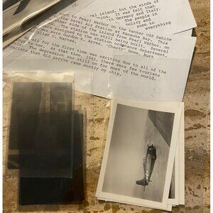 A compelling assortment of World War II memorabilia, this collection features a DVD from a Jacksonville reunion, vintage photographs, and heartfelt letters. The set provides an intimate glimpse into the past, capturing the essence of a significant historical era and the personal experiences of those who lived through it.
