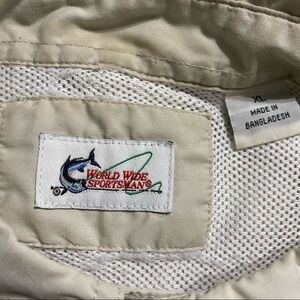 World Wide Sportsman Mens XL Cream Vented Fishing Short Sleeve Button Down Shirt in good used condition. No stains, tears or rips.
