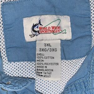 World Wide Sports Mens 3XL Button Front Vented Fishing Shirt Blue Chest Pockets