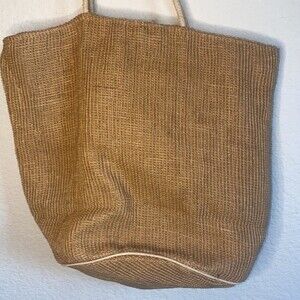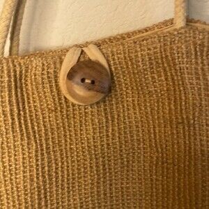 Beautiful bohemian BoHo burlap style large shoulder bag tote linen canvas with straps. Wooden button. One zipper pocket on the inside. Perfect for travel for work. 17 x 14 x 11.