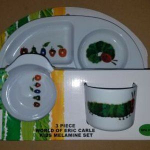 Eric Carle the hungry caterpillar feeding set consisting of sectional tray, bowl and cup.