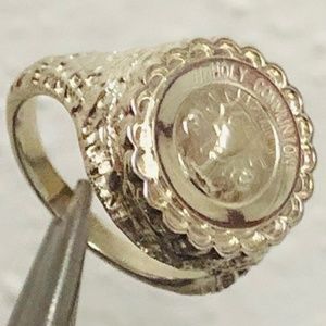 Short Description: R43051 / Sterling Silver / Size 07.00 / Polished / Holy Communion Ring