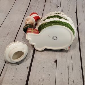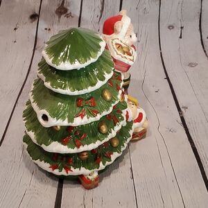 In very good used condition made of glass. Only used for display. Christmas tree with Santa bear. Stands about 8.5 inches tall.