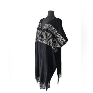 World Market Black Aztec Embroidered Fringe Open Front Cardigan Free …
