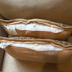 World Market Set of Two Earth Tone Floral Panel Kilim Style Boho Accent Pillows