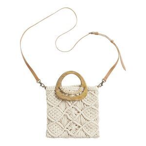 World Market Exclusive Boho Crochet and Wood Crossbody Purse Bag