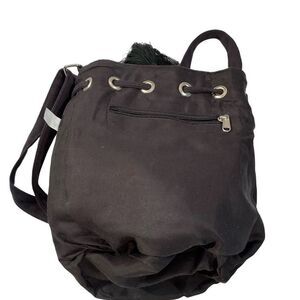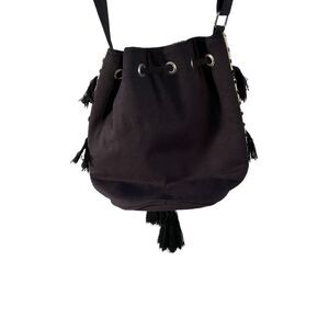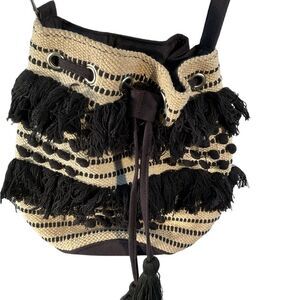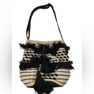 World Market Women’s Beige Black Boho Printed Striped Drawstring Bucket Bag