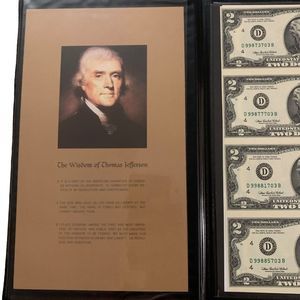 World Reserve Monetary Exchange 2003 Uncut Sheet $2 Jefferson Black Angus Banker