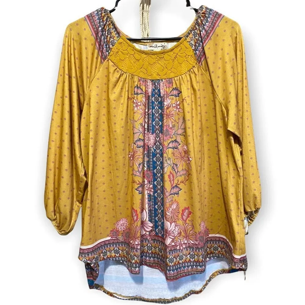 World Unity Flowy Yellow Patterned Blouse