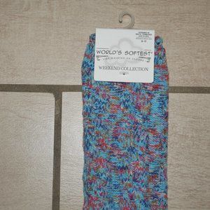 Worlds Softest Socks Ragg Cable Crew Womens Size 6-11 Light Blue Multicolor Gift