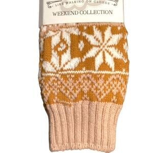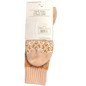 World’s Softest Tan Winter Fair Isle Crew Socks, Size 6-11 NEW
