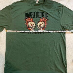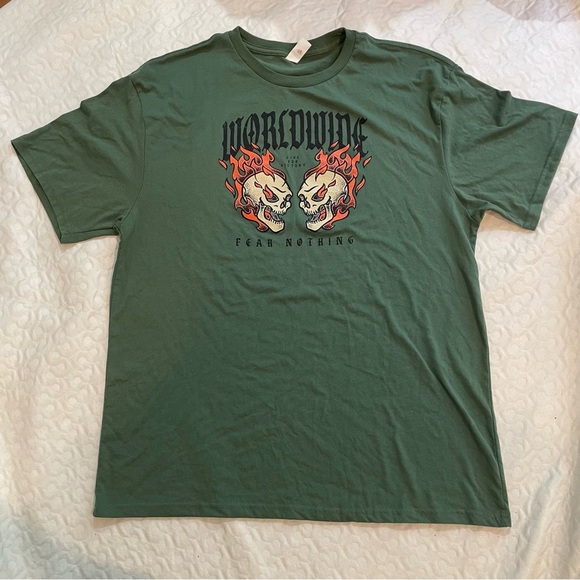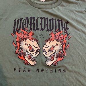 Worldwide Fear Nothing Green T-Shirt Men’s XL Streetwear Tee Skulls Gothic Fire