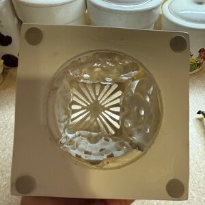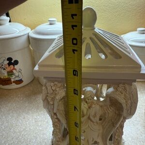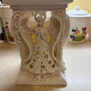 Angel Candle Holder made by Worldwide Home Products. Comes with light up candle. Please look at the photos. Each side has a different Angel on it. The bottom is not broken but please look at the photos.