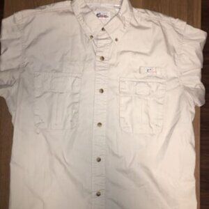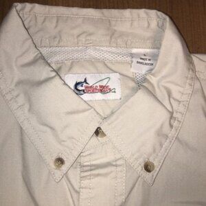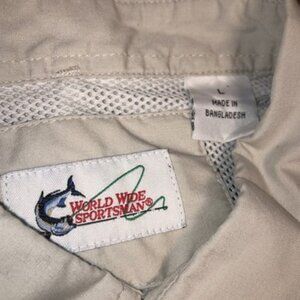 Worldwide Sportsman Button Up Shirt Adult Large Beige Fish Outdoor Short Sleeve
