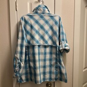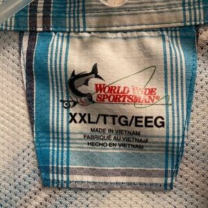 Worldwide Sportsman White Blue Plaid Button Down Shirt, Size XXL SPF 30