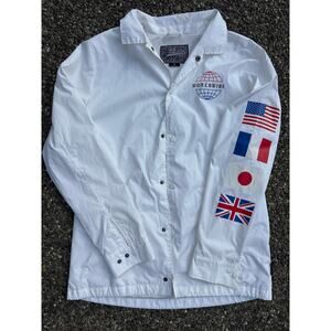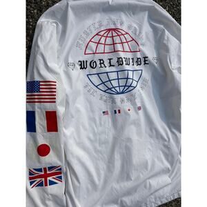 Worldwide windbreaker jacket white hustle & grind till the day I die flag M