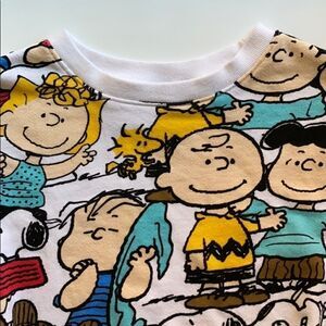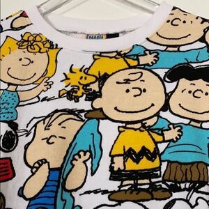 Super cute pullover style sweatshirt with all the famous Peanuts characters. Says size Small but more like a roomy Medium, please see measurements. Good pre-owned condition.