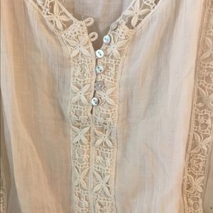 Cream colored lace tank top with button front and adjustable straps.