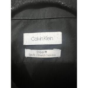 Worn CalvinKlein Men's Black Slim Fit No-Iron Button Down Dress Shirt 16.5x34/35