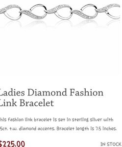 This fashion link bracelet is set in sterling silver .15ct. t.w. diamond accents (26 total diamonds). Original bracelet length is 7.5 inches, it has been resized to 7 inches but the two links are included. The bracelet has been worn once since being resized.