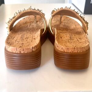 Worn Once! Donald Pliner FIFI Platino Embellished Satin Wedge Sandal 8.5