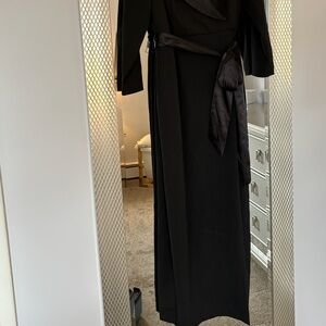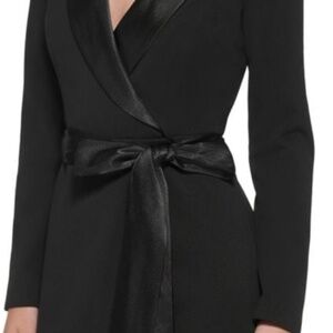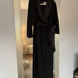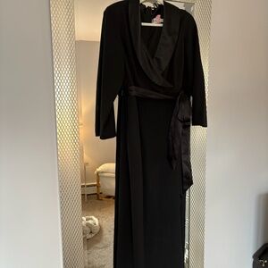All the elegance of a tuxedo with a feminine twist, this long-sleeve dress features satin lapels and a satin tie at the waist for an extra touch of class. Wore once when I got engaged :) Dry cleaned and ready to be worn! Beautiful formal dress.