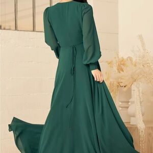 Worn Once! Lulu's Emerald Green Sleeve Wrap Gown