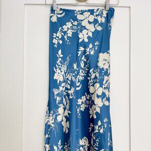 [Worn Once] Reformation Pratt Silk Midi Skirt in Blue Floral