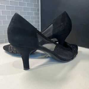 Worn Size 10 Karen Scott 3” heels Black w/bedazzeled accents lots of life left