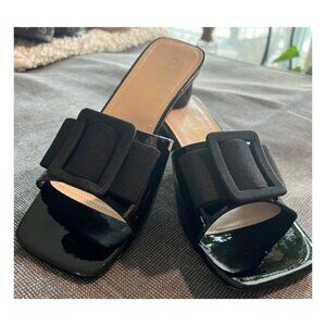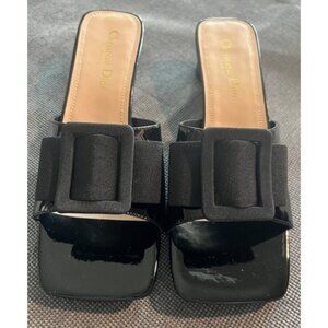 Worn Twice-DIOR Black Patent Idylle Heeled Slide - Sz 39