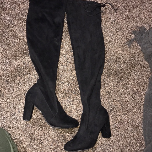 Sexy black suede over the knee boots