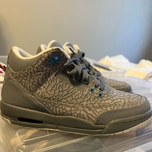 Worn once! AIR JORDAN 3 RETRO GS 'COOL GREY BLUE GLOW'